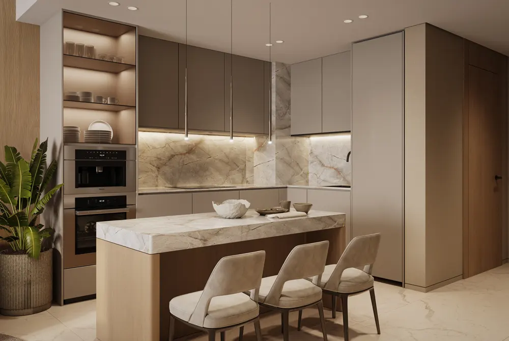 MN Vision’s ALMAAN 101 provides multiple layout options which optimize space utilization and create comfortable living conditions. The building provides compact studios to large 2 bedroom apartments ranging from sizes 421 sqft to 1421 sqft. These units cater to single residents and investors, providing extensive space for family living, presenting all units with intelligent design, contemporary kitchens, and usable spaces which improve daily activities.