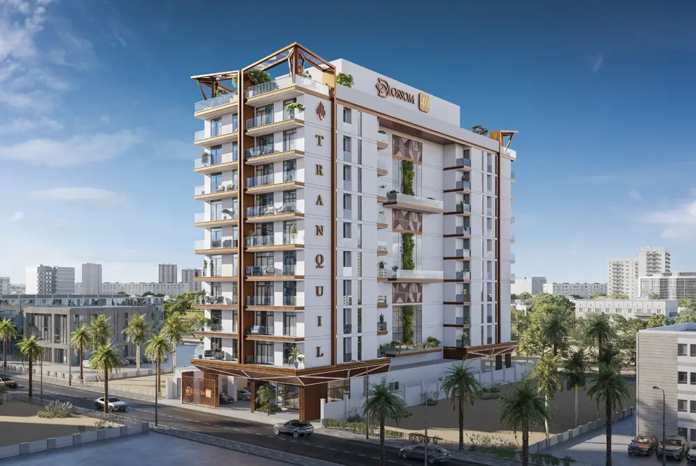 Blossom 40 is an off-plan residential project by Tranquil Infra Developers located in Majan, Wadi Al Safa 3, Dubailand, Dubai. This development has 1,5 and 2.5 BHK flats for families, working professionals and long term residents. It is a 10 storey boutique building with 66 carefully planned units. Apartments sizes average between 863 and 1,315 sq. ft. Each home is planned around natural light, usable floor area and a peaceful living space. There is a double-height amenity deck, a rooftop with open air spaces and a kids’ zone. Blossom 40’s more than a home. A complete everyday living environment designed for comfort.