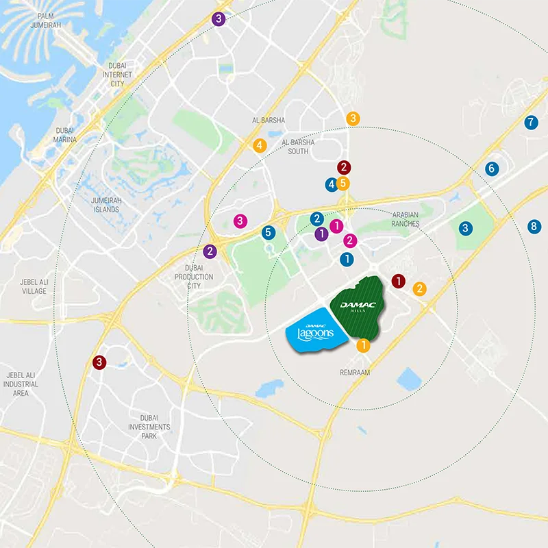 Damac Lagoon Views is strategically located within the Damac Lagoons community, offering easy connectivity to major city locations. This area is surrounded by many prominent landmarks, including the Dubai Polo & Equestrian Club, Dubai Autodrome, EXPO 2020, and Global Village. The nearby Hessa Street and well-developed transportation links ensure hassle-free access to anywhere in Dubai.