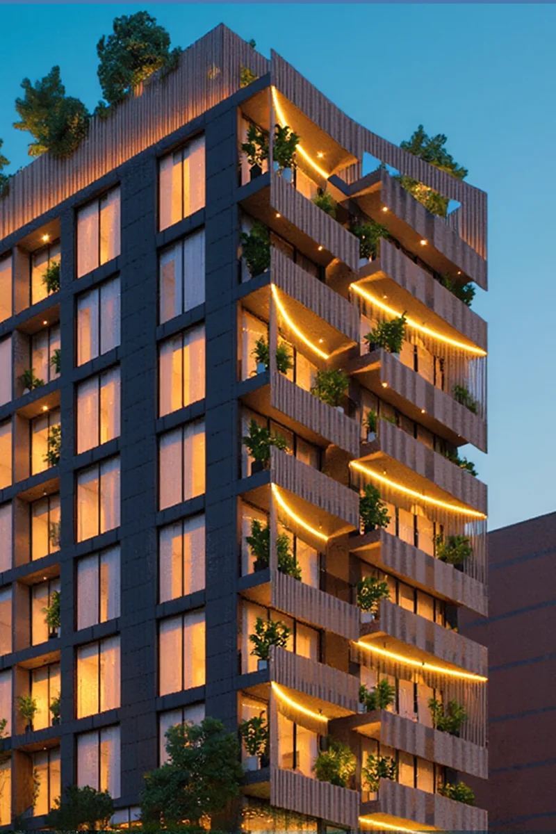 - 8-Storey Low-Rise Façade Comprising 1 & 2 Bedroom Apartments