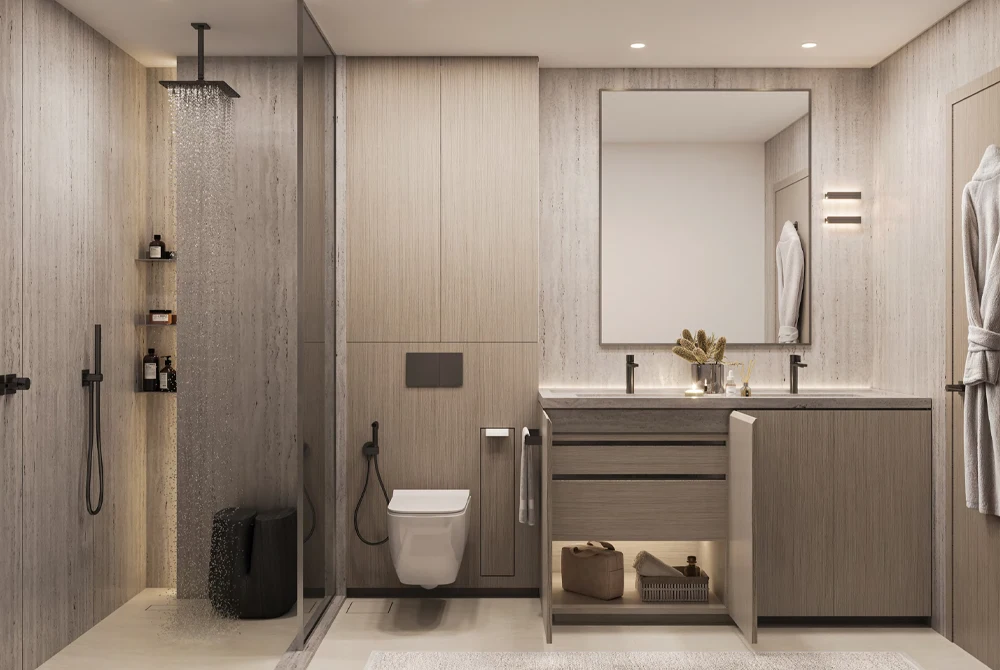 The masterplan of this residential project is efficiently planned to provide a perfect mixture of nature, eye-catching structural design and convenience. This residential project comprises a 40+ storey high-rise tower with facade of glass and metal, entrance of the development is beautifully designed with landscaped courtyards and waterbodies. This masterplanning also provides a mixture of recreational and community spaces where residents can relax and enjoy their free time.