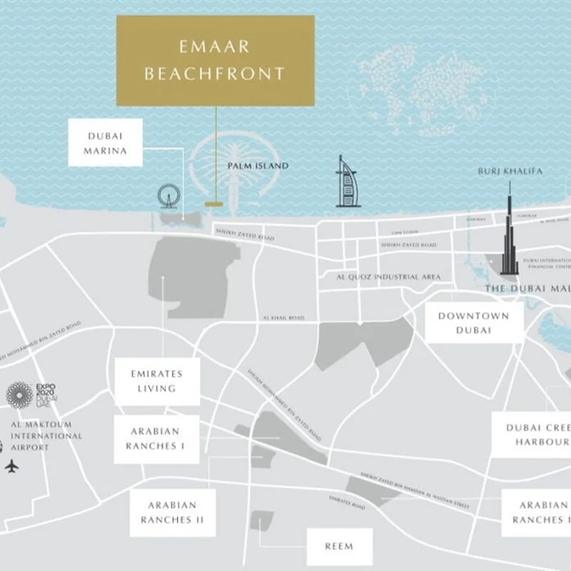 Boasts a prime location within the elite Emaar Beachfront community: direct access to the private pristine beaches and phenomenal views of the Arabian Gulf bend added with its strategic positioning to create direct access through Sheikh Zayed Road-the effortless reach to key destinations such as Downtown Dubai, Dubai Marina, and Dubai International Airport. Proximity to the Palm Jumeirah and Bluewaters Island only adds to the attractiveness, a world of luxury and leisure just a few minutes away.