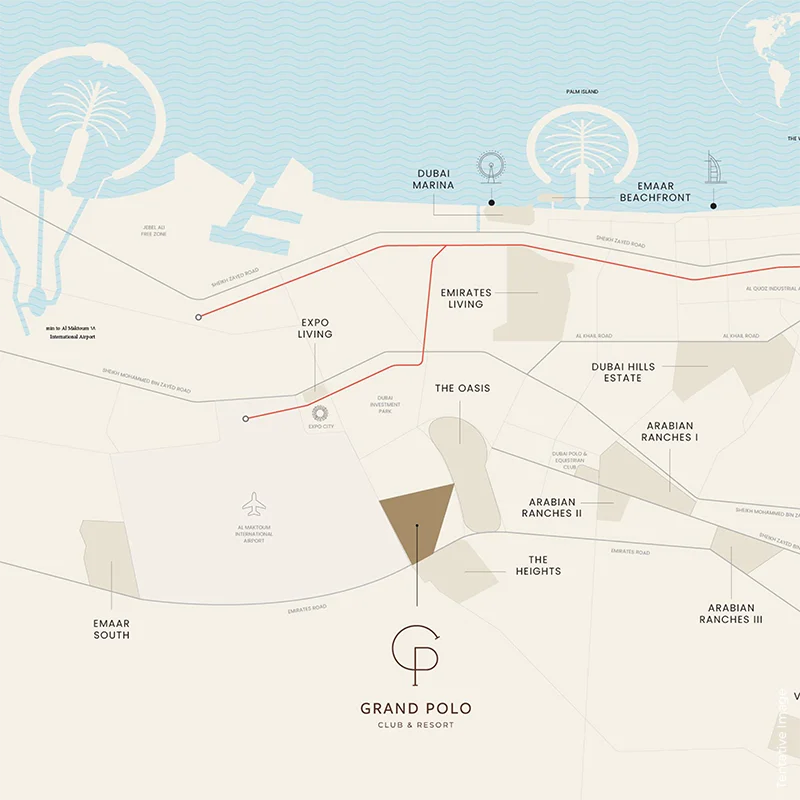 Selvara by Emaar location at Grand Polo Club & Resort, Dubai is a strategic position with lots of advantages for residents & investors, near the intersection of Expo Road and Emirates Road ensures excellent connectivity towards Dubai’s most desirable areas. This location works as a switch between resort-style environment and modern infrastructure of a big metropolitan.