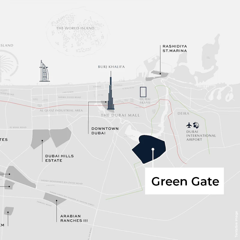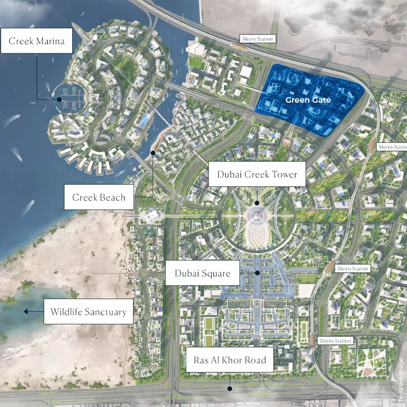 Emaar Silva Tower Location at Green Gate, Dubai Creek Harbour allows you easy access to main Dubai roads and major locations. You’re never too far away whether your destination is Downtown Dubai, the city’s leading business and entertainment center, Dubai International Airport or another. Furthermore, it’s a great place for families thanks to the community services and proximity from the best schools, hospitals, retail stores and recreational activities.