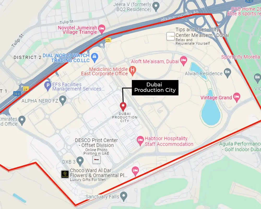 - The Dubai Production City community provides a well-planned area which serves as the location for this development.