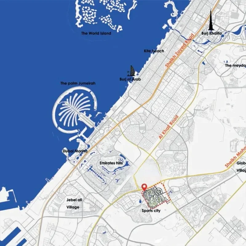 Located strategically near Dubai International Cricket Stadium, Els Golf Club. A 5-minute drive from Autodrome, Downtown Dubai, and Palm Jumeirah, therefore the project is best suited for those who want to view life here from a long-term perspective or simply as a lifestyle choice, offering flexible payment plans such as the usual two- or three-year post-handover plan. Handover is scheduled for Q2 2027.