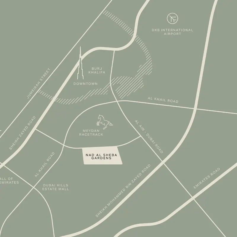 Nad Al Sheba Garden Phase 11 is near Meydan and Downtown Dubai. You’re 10 minutes from the city’s pulse but still in a quiet pocket. Sheikh Mohammed Bin Zayed Road and Al Khail Road connect you to the major attractions quickly. Dubai International Airport is 15 minutes out. Dubai Hills Estate Mall is 12 minutes away. Business Bay and major landmarks cluster nearby.
