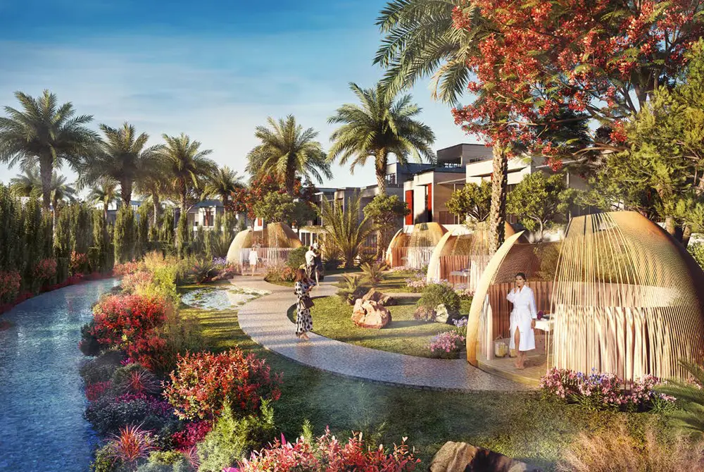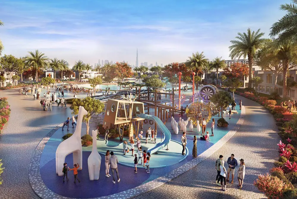 The master plan combines serenity with vitality perfectly. You’ll find plenty of green areas, a flowing river, a hydroponic farm, and many other options for staying healthy. This developer knows location is vital in any real estate project. That’s why this development is close to important spots like Expo 2020, Al Maktoum International Airport and Global Village. Schools, shopping centers and golf courses are all nearby.