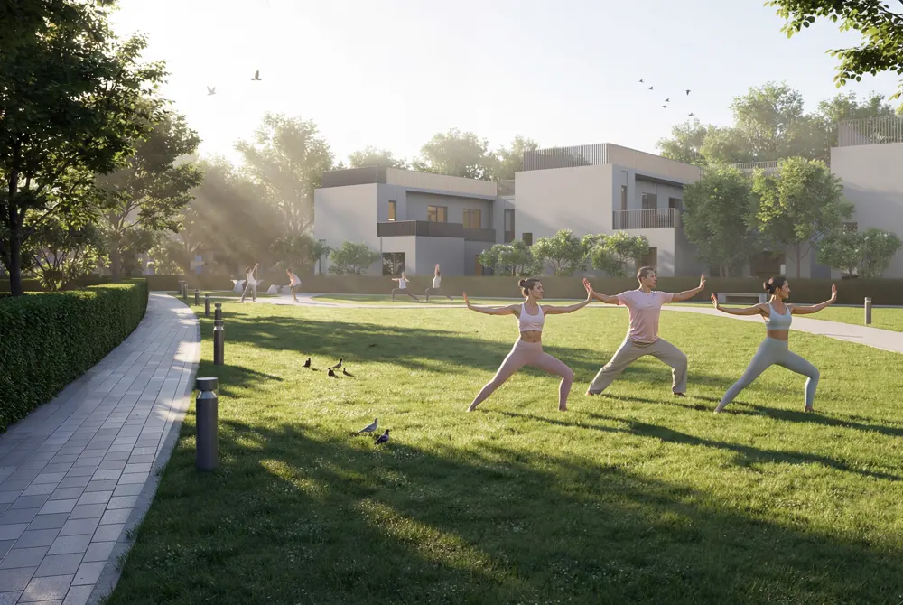 The development creates an environment which allows residents to experience both comfort and privacy while developing strong connections with their neighbors in a peaceful residential area. The following amenities include all essential elements which create a space that enables modern families to relax and handle their daily activities.