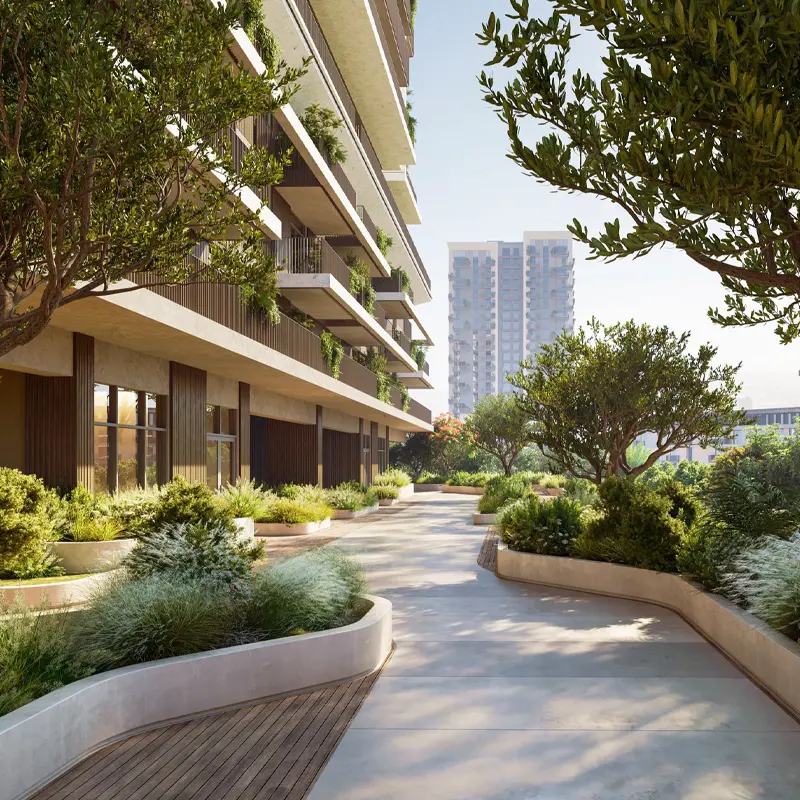Residents will have full access to an array of world class amenities that include temperature controlled swimming pools, fully equipped fitness centers, beautifully landscaped gardens, jogging and cycle tracks, children’s play areas, and retail shops and cafes available on site. Each of these facilities is designed with wellness and lifestyle in mind along with a place to feel at home within the community.