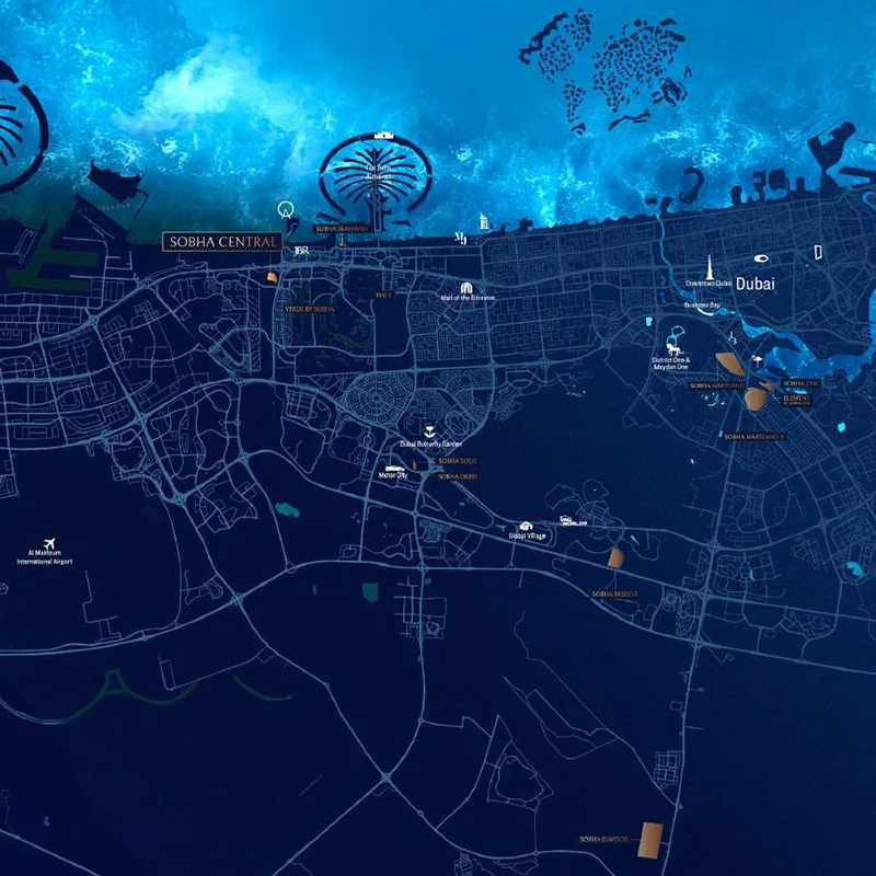 The Mirage location at Sobha Central on the prestigious Sheikh Zayed Road (SZR) provides unmatched strategic advantages for the residents and investors. This prime location offers easy connectivity to the major economic and leisure hubs of the city. And the best thing is that, Jebel Ali Metro Station is only 2 minutes walk away from here offering exceptional public transport access. Furthermore, the development features dedicated dual access lanes, including a rare fly-out bridge directly onto SZR, minimizing traffic inconvenience and solidifying its reputation as a highly connected and high-demand address.