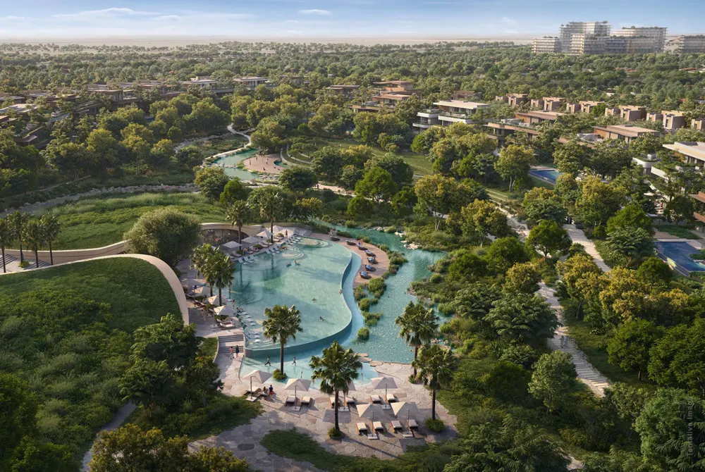 The development creates an environment which supports well-being while enabling social connections and exploration activities. The community provides wellness facilities which people can use in combination with its active outdoor areas and its innovative recreational spaces which attract visitors of all ages. The modern luxury at this location combines with natural living spaces which visitors can enjoy through walking, cycling paths, resort-style swimming pools, family-friendly garden areas and play zones.