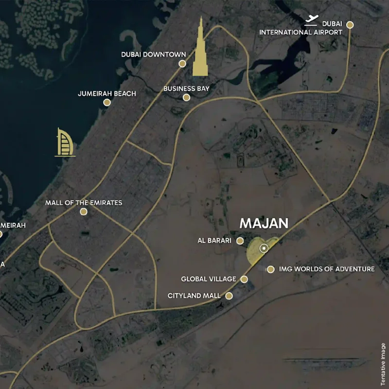 Vincitore Wellness Estate location Majan, Wadi Al Safa 3, DubaiLand, Dubai is a prime location ensures easy and smooth connectivity via well-connected roads. Dubailand is a strategically positioned, multi-community development, blending calm suburban living with easy access to Dubai’s most famous landmarks, including Burj Khalifa, Dubai Polo & Equestrian Club, The Palm, Expo City Dubai and both Dubai International and Al Maktoum International Airports.