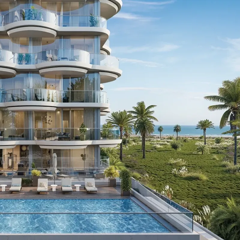 Aqua Maya is a latest premium residential project by BnW Developments on Al Marjan Island, Ras Al Khaimah offers an unparalleled blend of luxury and comfort. This exclusive collection of luxury seafront apartments features outstanding architecture and eye-catching views. The masterplan of this development emphasizes style and modernity, creating a peaceful and refined luxury living experience.