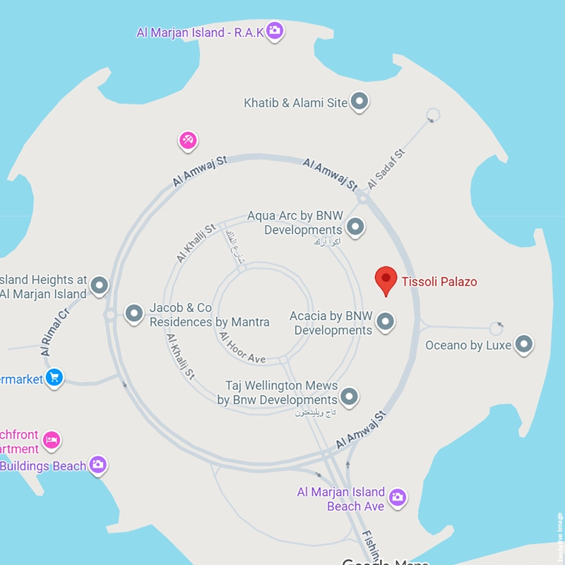 Palazzo Tissoli location at Al Marjan Island, Ras Al Khaimah offers unmatched beachfront living and access to lush green spaces. Residents in such a high-demand community have access to convenient connectivity to highways, malls, leisure areas, and high-class amenities. With a location that ideally mixes tranquillity and urban living, it is the most desired choice for a luxurious yet accessible life in RAK.