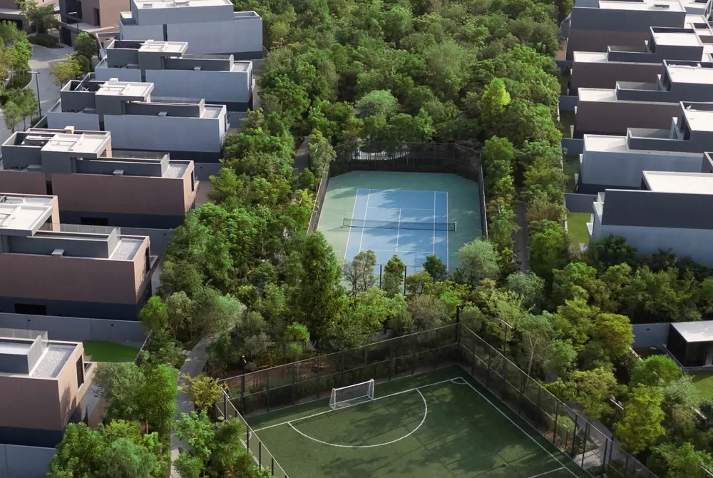 The masterplan of this residential project is designed to offer a perfect merger of suburban living with nature, featuring expansive green spaces, tree-lined boulevards and pedestrian-friendly walkways. The plan thoughtfully balances private and communal areas, giving residents the perfect mix of personal space and opportunities to connect with neighbors.
