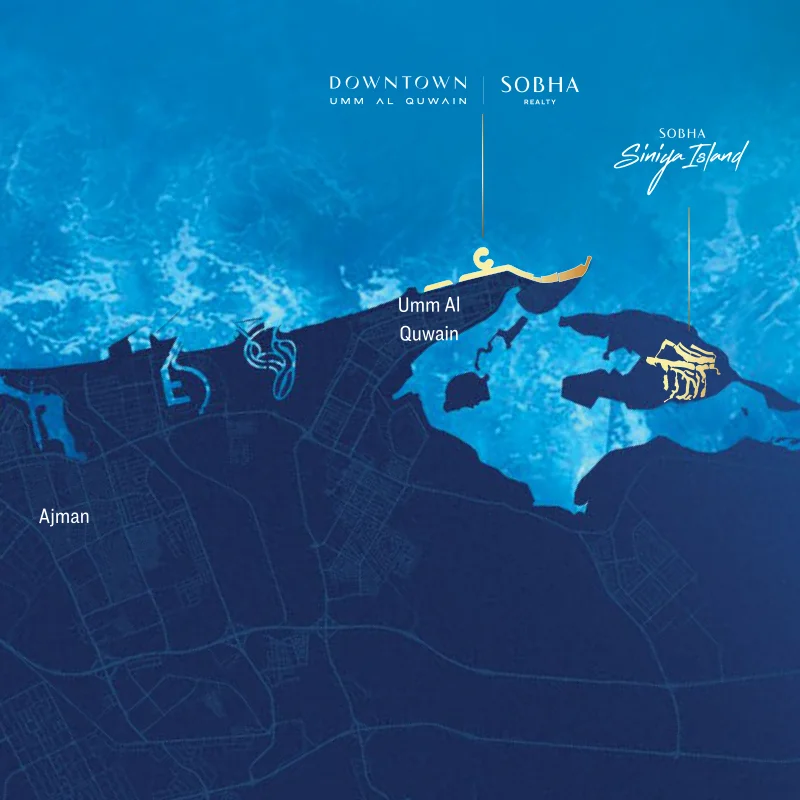 Location of Sobha Pristine Beach Residences at Siniya Island, Umm Al Quwain offers an exclusive blend of luxury and strategic connectivity. This community is accessible via a 1.7km causeway, it provides a tranquil, nature-rich island escape while remaining conveniently close to major UAE cities. This unique location , coupled with Umm Al Quwain’s emerging market and Sobha’s master-planned amenities, makes it an attractive proposition for both serene beachfront living and strong investment potential.